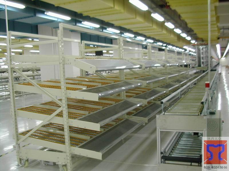 西安流利架厂家是将货物置于滚轮上,利用一边通道存货另一边通道取货。料架朝出货方向向下倾斜,货物在重力的作用下向下滑动。可实现先进先出,并可实现一次补货,多次拣货。流利架存储效率高适合大量货物的短期存放和拣选。流利架广泛应用于配送中心、装配车间以及出货频率较高的仓库。